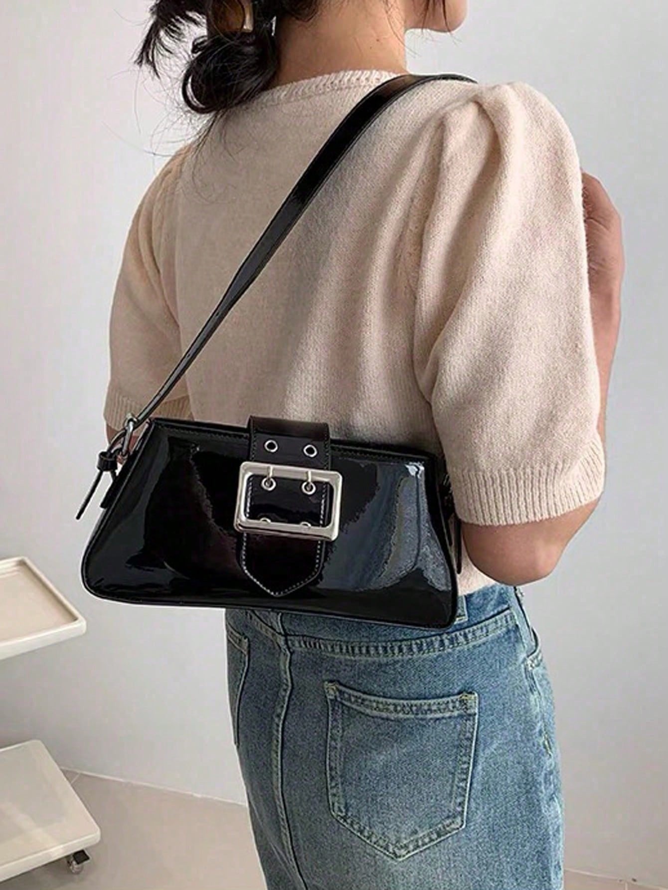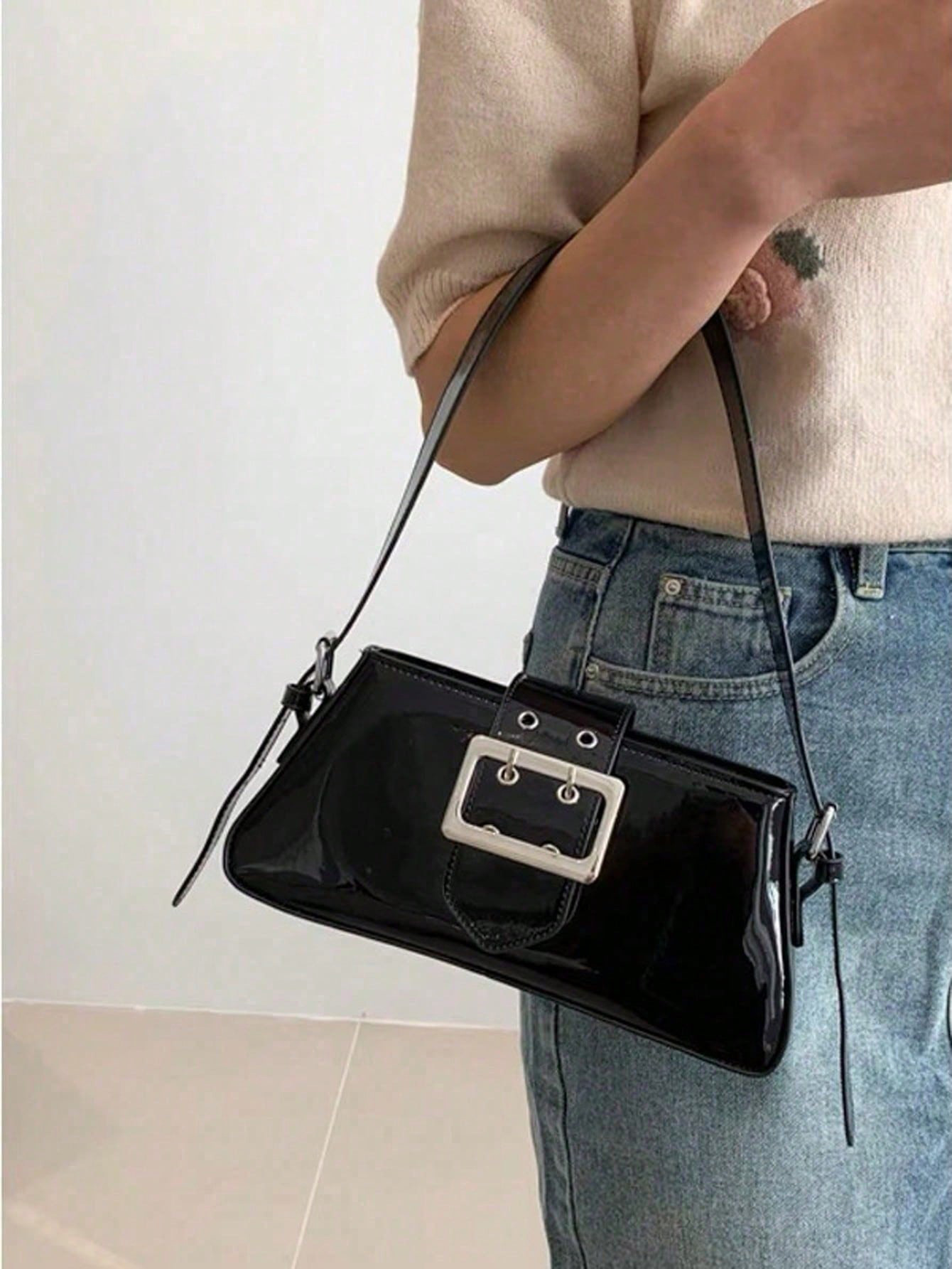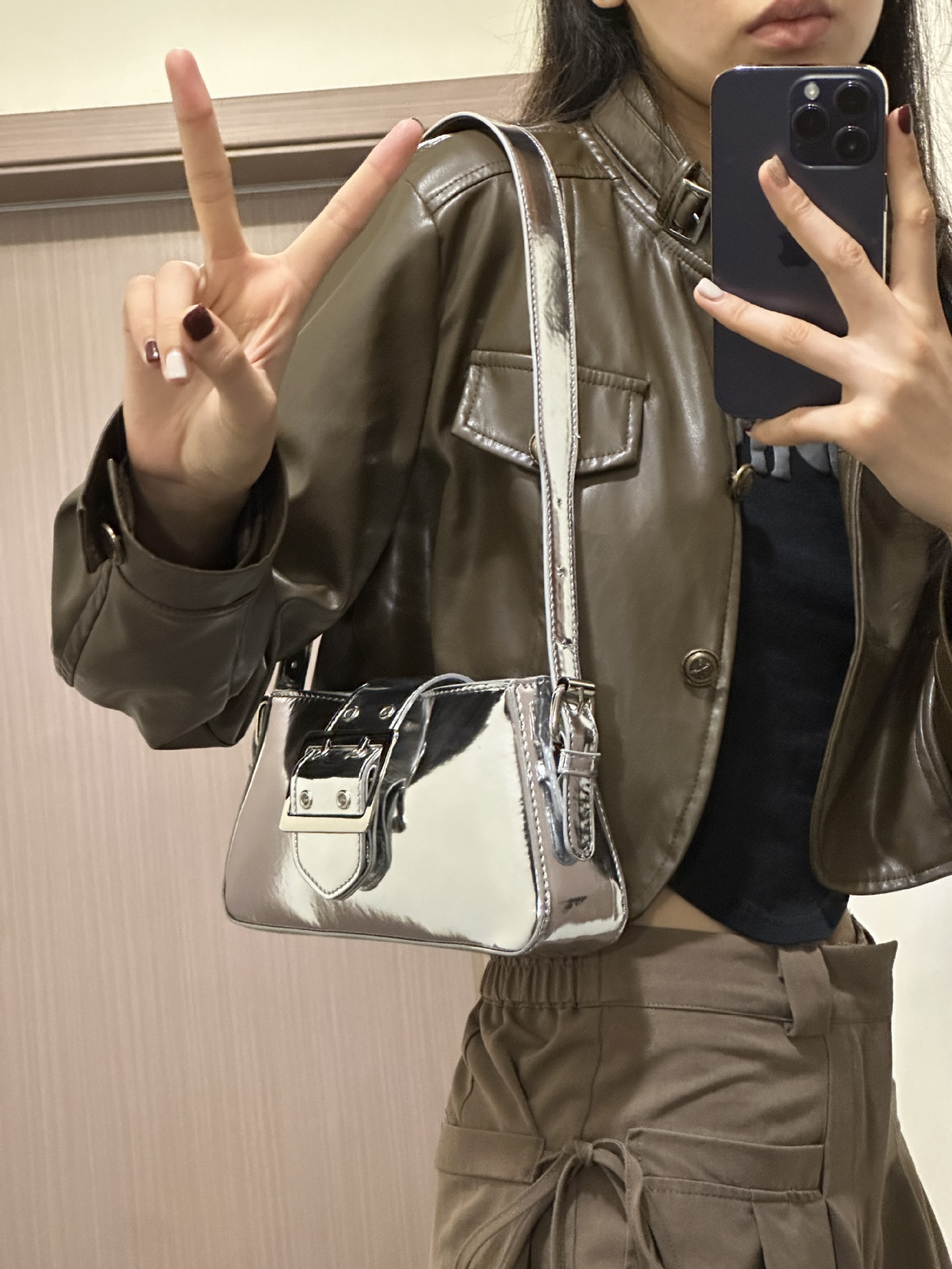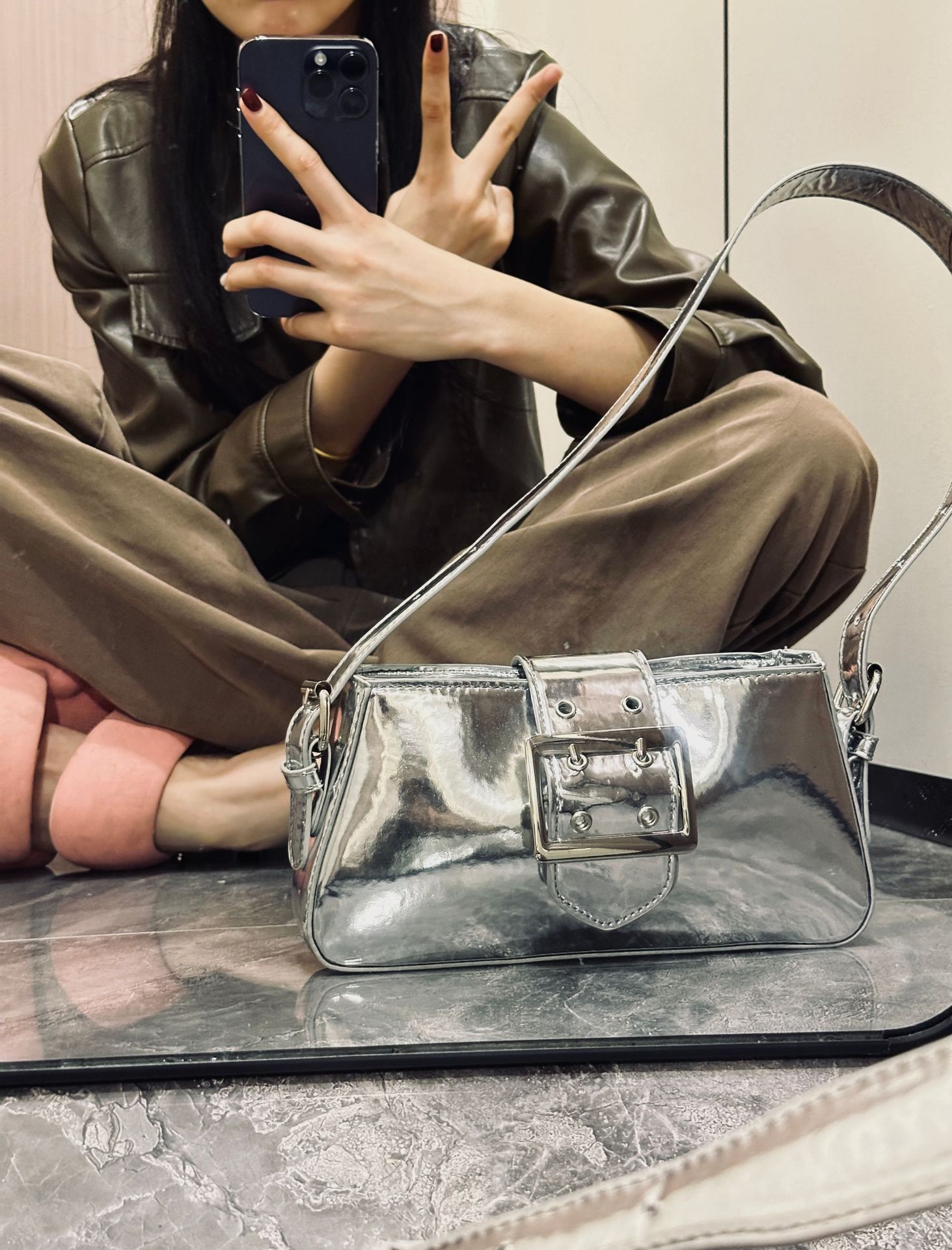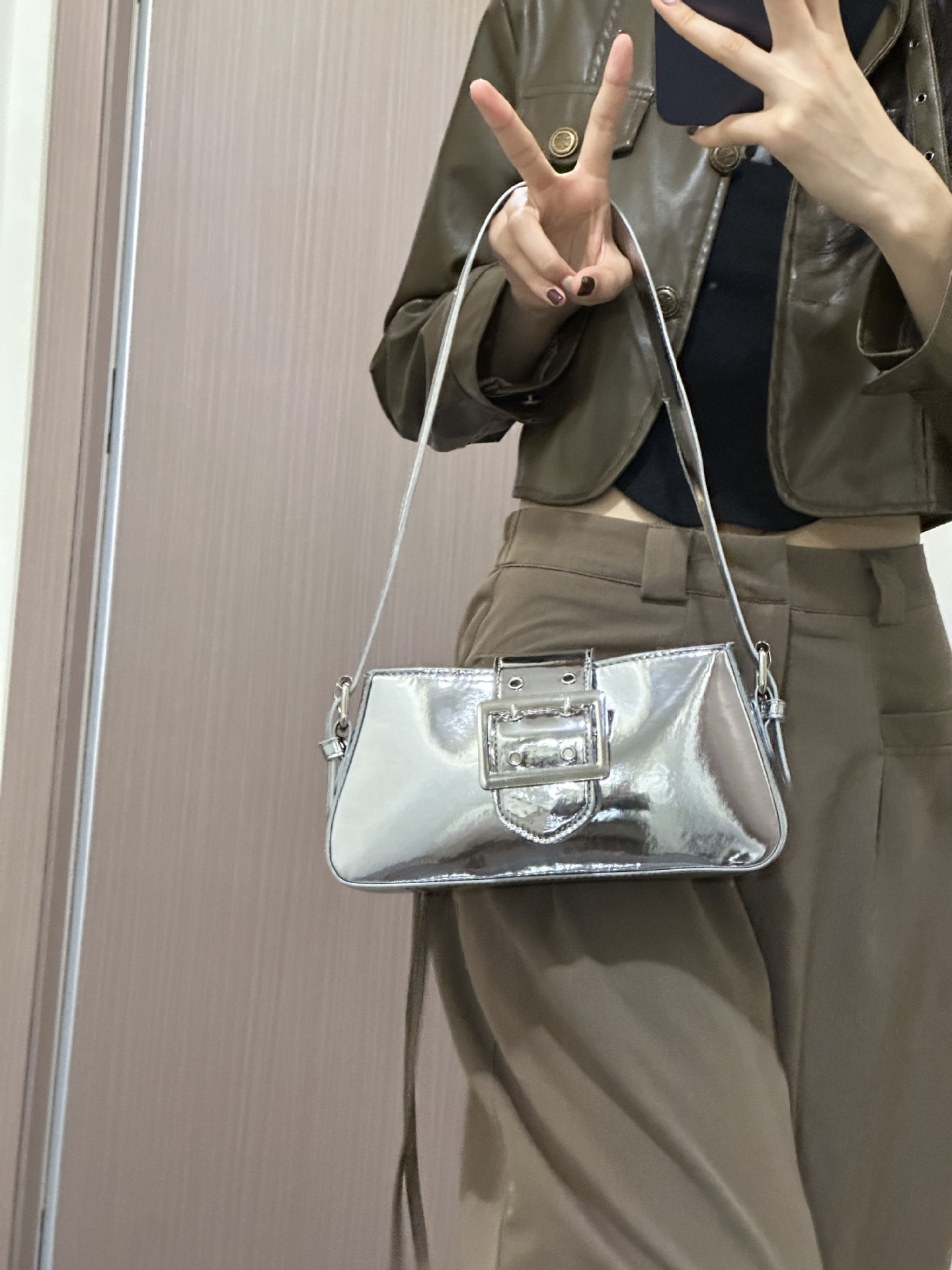Handheld Patent Leather Silver Sweet & Edgy Chic Bag